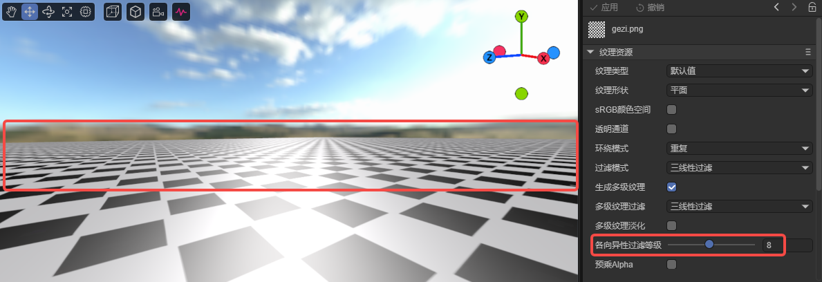 anisoLevel = 1:关闭各向异性过滤,仅使用基础的双线性或三线性过滤。anisoLevel > 1:启用各向异性过滤,常见可选值为 2、4、8、16,对应不同的清晰度与性能消耗。