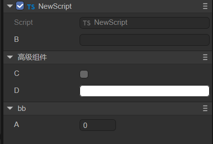 对于有下划线的属性,默认是不会被显示到IDE里,此时该组件属性的价值只剩下将值保存到场景文件中了,这一点上文有所提及,示例也有应用。